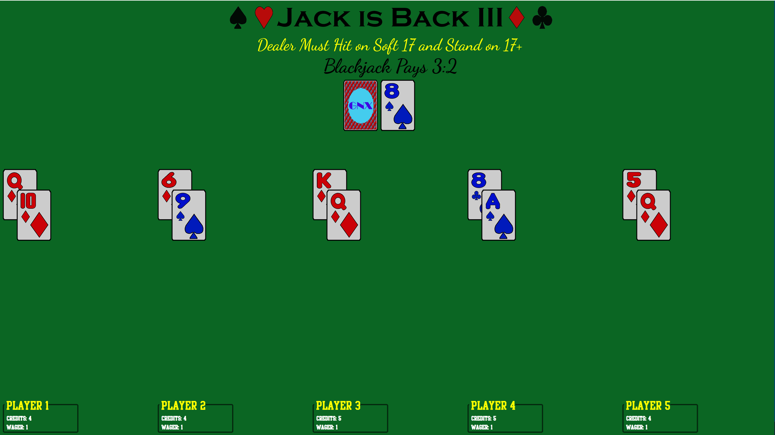 When I started, I already had the nuts and bolts of a character-based Blackjack game written- things like eliminating PRNG bias, classes for handling cards (rank, suits & values), support for a configurable number of decks in a shoe, and of course handling multple hands per player for splits. I also had the wagering and payout system in place, as well as the vast majority of the scoring logic (there were some edge cases related to integrating voice). What I didn't have in place was an overall architecture, meaning no framework or system for moving such a game to a graphical presentation with artwork & sound. This meant timing & threading, and while I have done a fair bit of multithreaded development before (so I wasn't scared), the type of multithreading in a blackjack game is just different enough from what I've done in the past that it took me a bit to get my head wrapped around what the correct flow should be. The main issue is that everything is driven by timeouts- both player timeouts and player group timeouts; timing out causes an action or actions, but player input also causes actions too. The arhitecture I ultimately settled on was a router component that handled the calls to and from the game logic regardless of whether the action was triggered via keys or via timer expirations. It came out pretty clean.